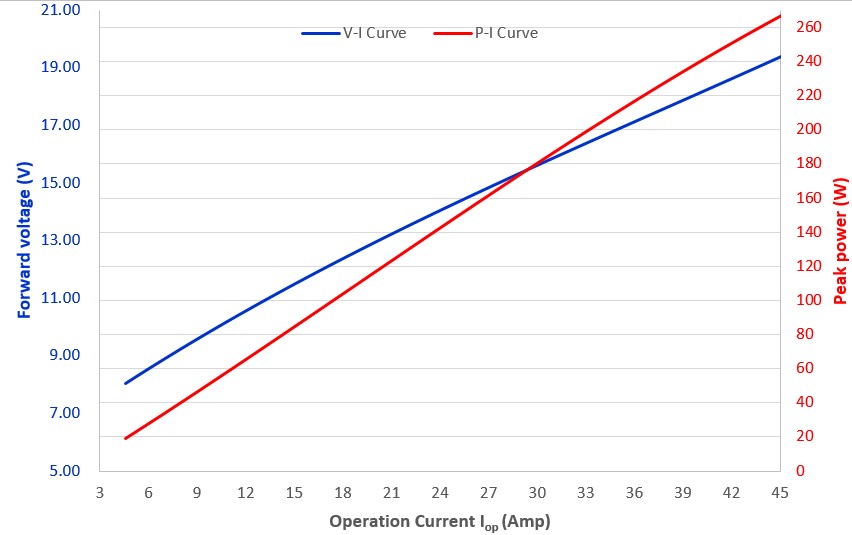 瑞波5節(jié)功率225W 905nm EEL芯片PIV曲線(RB-905E-300-225-0.75-SE-G90)