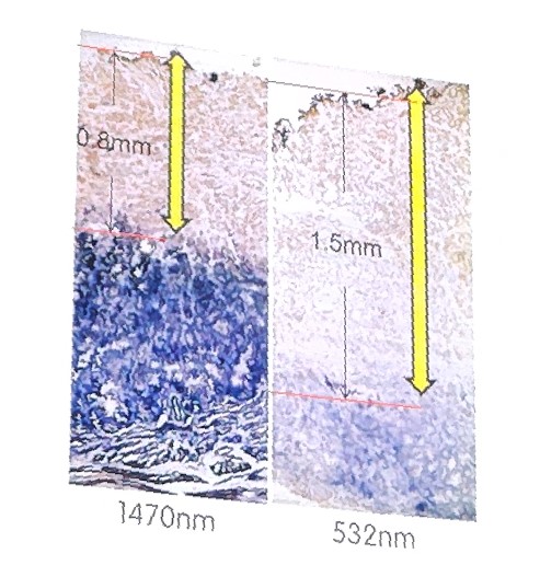 圖1:1470nm激光手術(shù)相比532nm的的優(yōu)勢