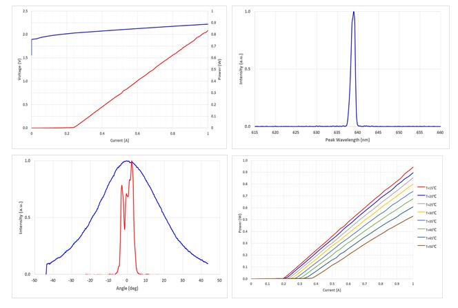 深圳瑞波光電子有限公司將從2021年1月份正式發(fā)布一款500mW 638nm大功率紅光激光芯片,該款芯片可以用于照明領(lǐng)域。產(chǎn)品型號為RB-638A-55-0.5-1.2-SE,其中發(fā)光條寬55μm、腔長1.2mm,輸出功率為500mW,室溫下工作電流為700mA。芯片整體尺寸為0.3mmx1.2mm(寬*長),芯片支持裸芯、COS以及TO-56封裝。