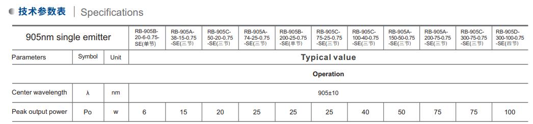 深圳瑞波光電子有限公司只針對(duì)公司旗下的905nm芯片系列(見下圖)提供塑料封裝。