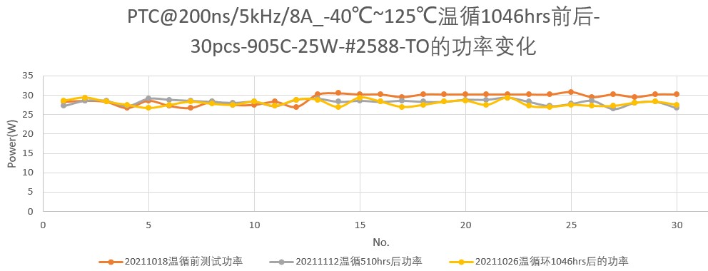 圖1:PTC測(cè)試項(xiàng)目的部分?jǐn)?shù)據(jù),芯片產(chǎn)品A,發(fā)光面功率密度41KW/mm2