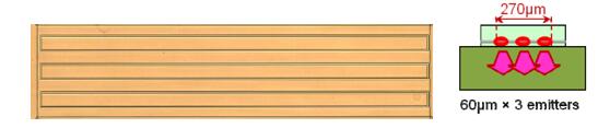 圖 4 三發(fā)光點,條寬60μm×3結構
