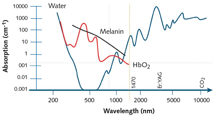 除了以上提到的醫(yī)療領(lǐng)域,1470nm激光器在美容領(lǐng)域也有廣泛的應用,例如現(xiàn)在熱門的嫩膚領(lǐng)域不斷展示出新的潛力。與其他波長的激光相比,1470 nm的激光對水有較好的吸收系數(shù),可穿透真皮層約400 μm。而且波長超過1400nm的激光可以被眼睛的角膜和晶狀體強烈吸收,這意味著能量通常不會到達視網(wǎng)膜。在最大允許曝光(MPE)下,波長超過1400nm的激光光源被認為是人眼安全的。