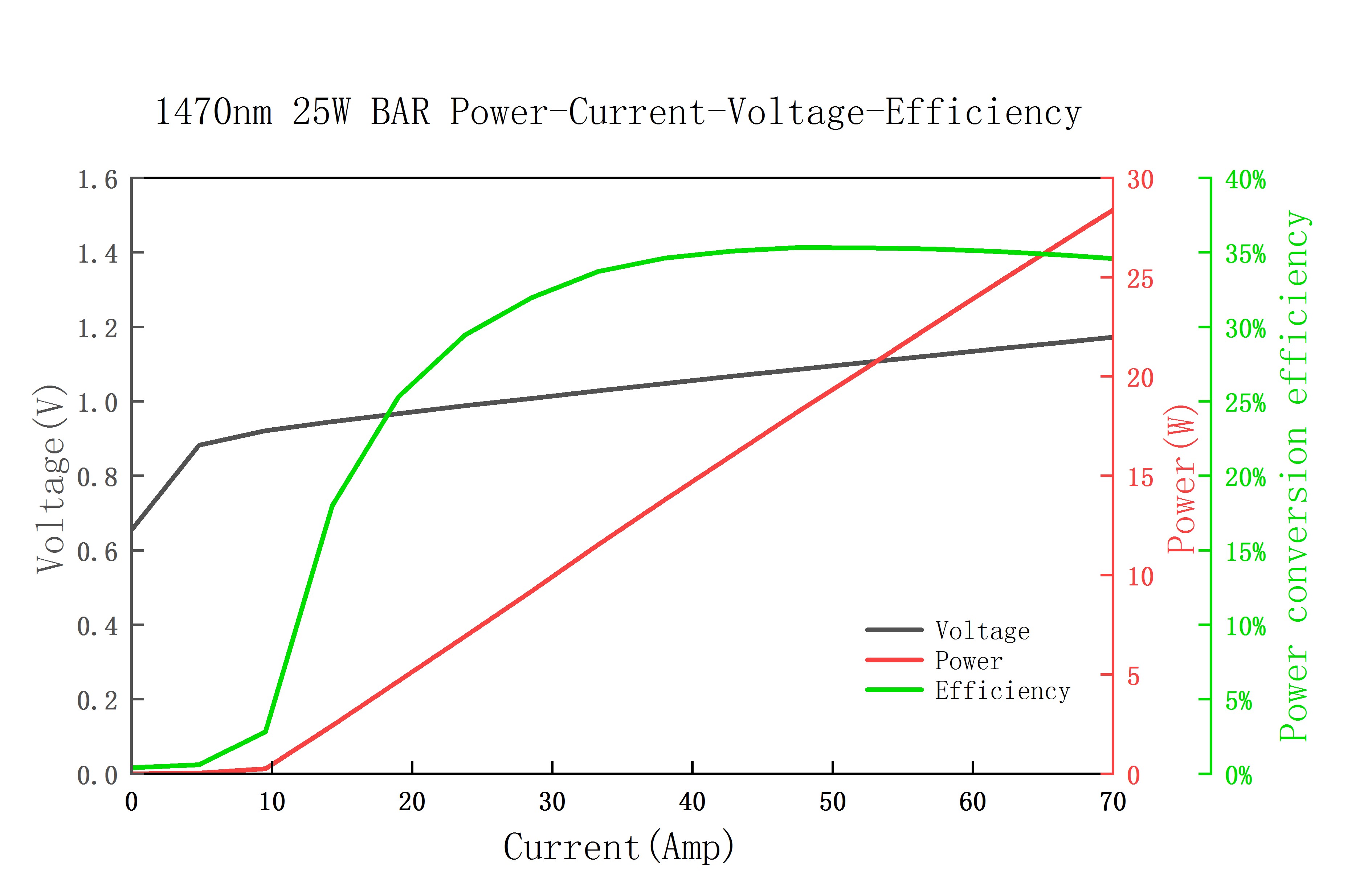 瑞波光電之前已經(jīng)推出了5.5W 1470nm和1550nm 單管芯片系列,本次推出25W 1470nm和1550nm巴條系列。巴條內(nèi)置19個發(fā)光點,工作電流66A,光電轉(zhuǎn)換效率達33%,具有領(lǐng)先的性能和極高的性價比。