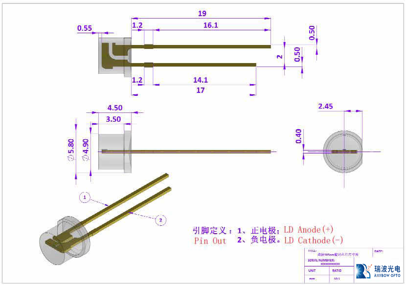 深圳瑞波光電子有限公司只針對(duì)公司旗下的905nm芯片系列(見下圖)提供塑料封裝。