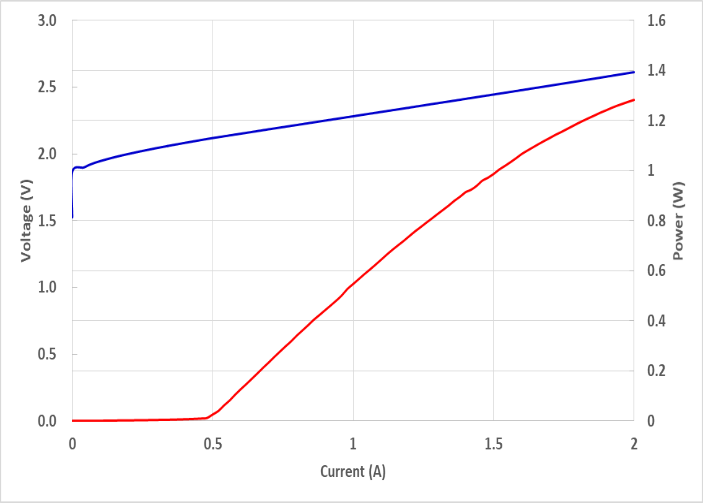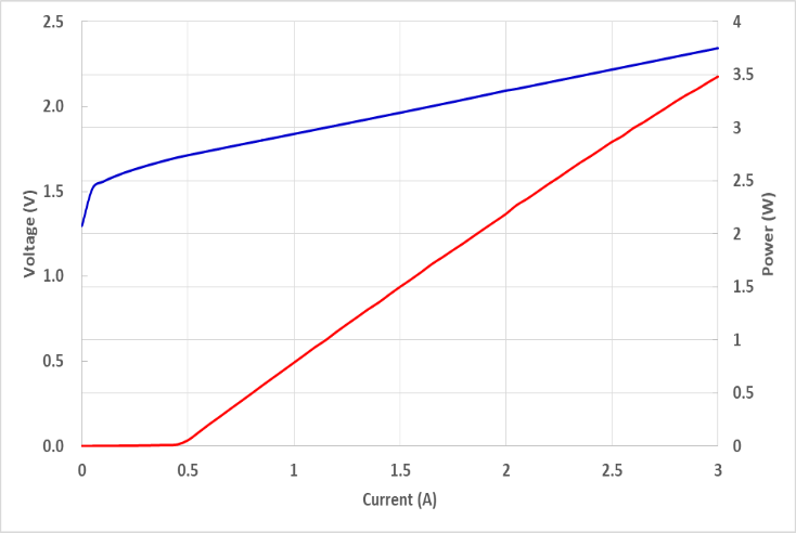 在連續(xù)功率808nm器件方面,瑞波光電開發(fā)了3W TO9器件,可用于激光照明和醫(yī)美領(lǐng)域,型號(hào)RB-808B-150-3-1-TO9,工作電流2.6A,工作電壓2.3V,斜率效率1.4W/A.